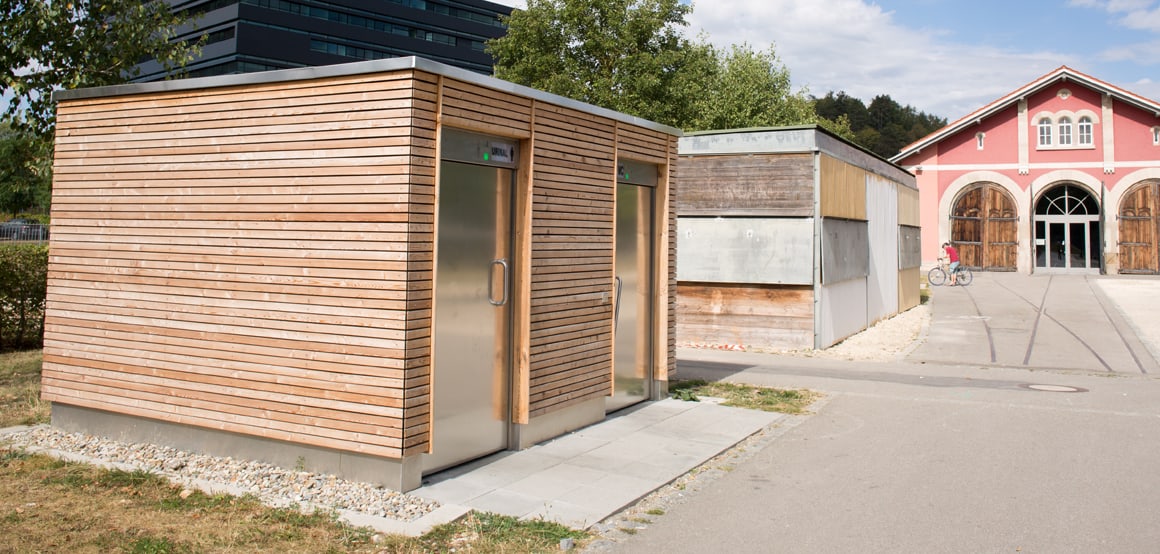 Liefern und Versetzen eines Stahlbetonfertigteils in Form einer WC-Kabine incl. aller Versorgungsleitungen und zugehöriger Technik.