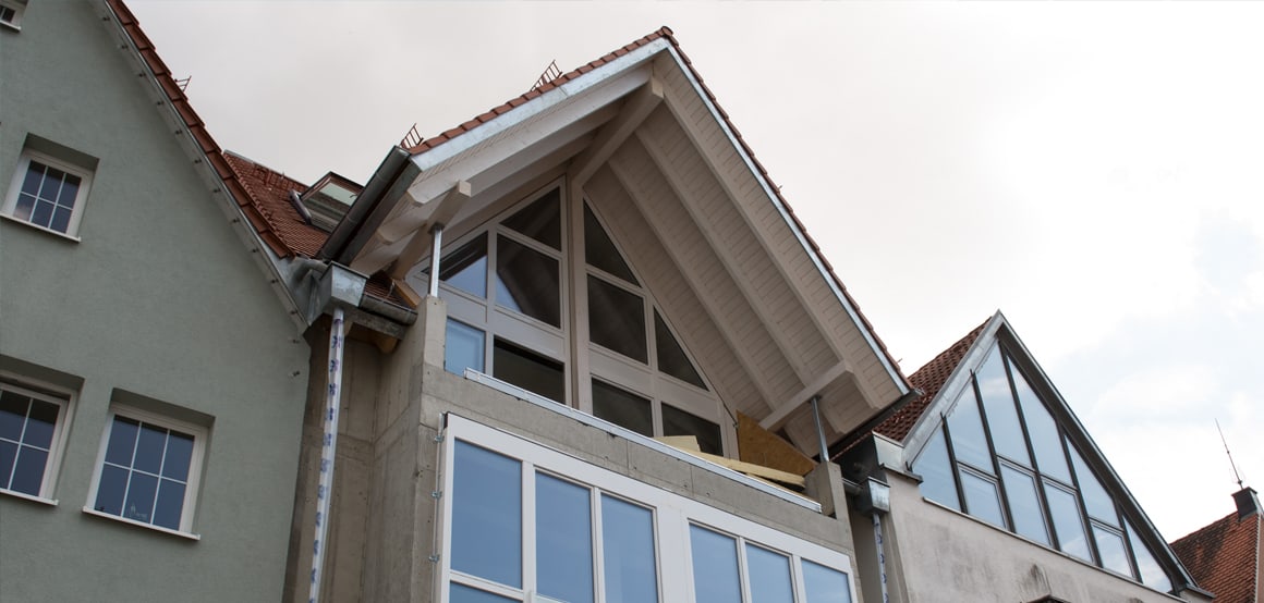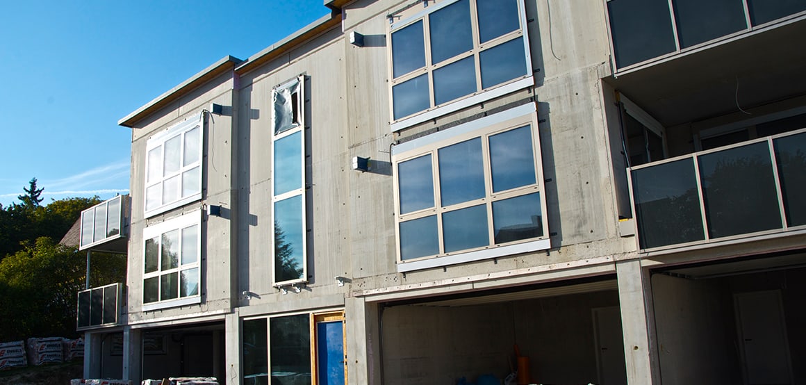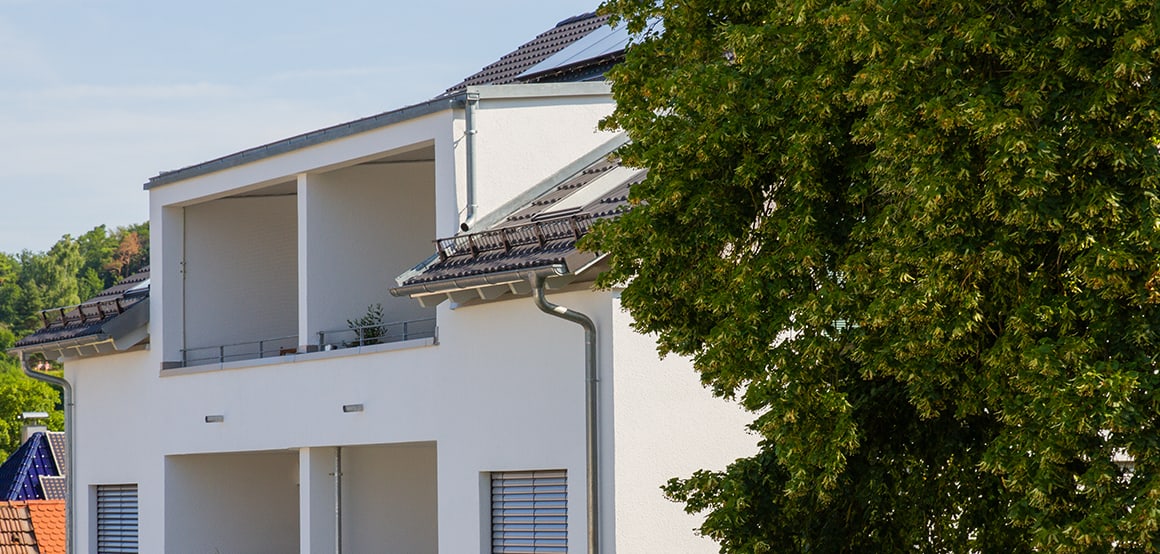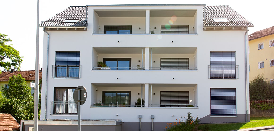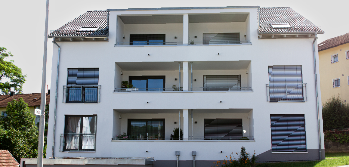 6-Famileinwohnhaus in massiver Bauweise aus Stahlbeton und Hochlochziegel.