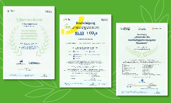 Durch die erfolgreiche Anwendung der Nachhaltigkeits-Regulatorik, des Nachhaltigkeits- Navigator Handwerk und die Erfüllung der Bilanzgrenzen bei der Klima-Ampel haben wir bedeutende Fortschritte in unserer Nachhaltigkeitsstrategie erzielt. Diese Maßnahmen helfen uns nicht nur, unsere ökologischen Fußabdruck zu minimieren, sondern auch unsere Position als Branchenführer zu stärken. Die Nachhaltigkeits-Regulatorik im Bauwesen stellt sicher, dass wir alle gesetzlichen Anforderungen, um nachhaltige Bauprojekte zu realisieren. Der Nachhaltigkeits-Navigator Handwerk unterstützt uns dabei, unsere betrieblichen Nachhaltigkeitsaktivitäten systematisch zu erfassen und kontinuierlich zu verbessern. Zudem zeigt die Erfüllung der Bilanz- grenzen bei der Klima-Ampel, dass wir aktiv zur Reduzierung von Treibhausgasemissionen beitragen.